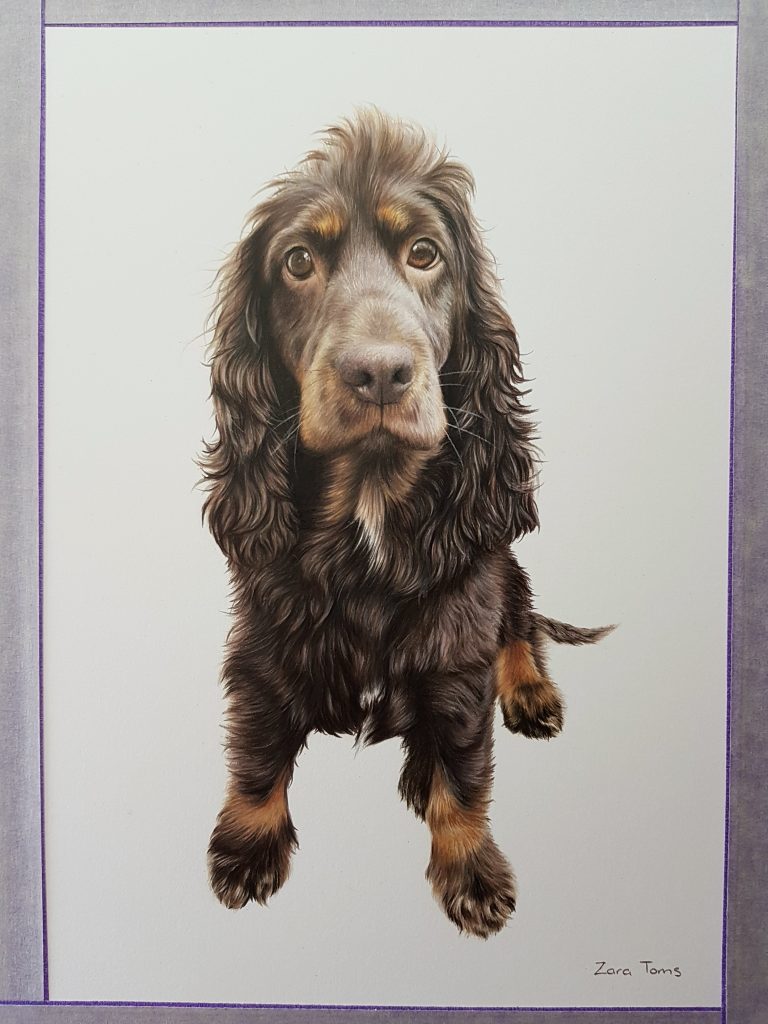 I am so lucky to be asked to draw so many Spaniels. I love their curls and their eyes are always so expressive. Bailey has a wonderful top knot which most Spaniels have. My 3 year old Sprocker has one but its very long and straight. I have good fun giving her many hair styles haha.