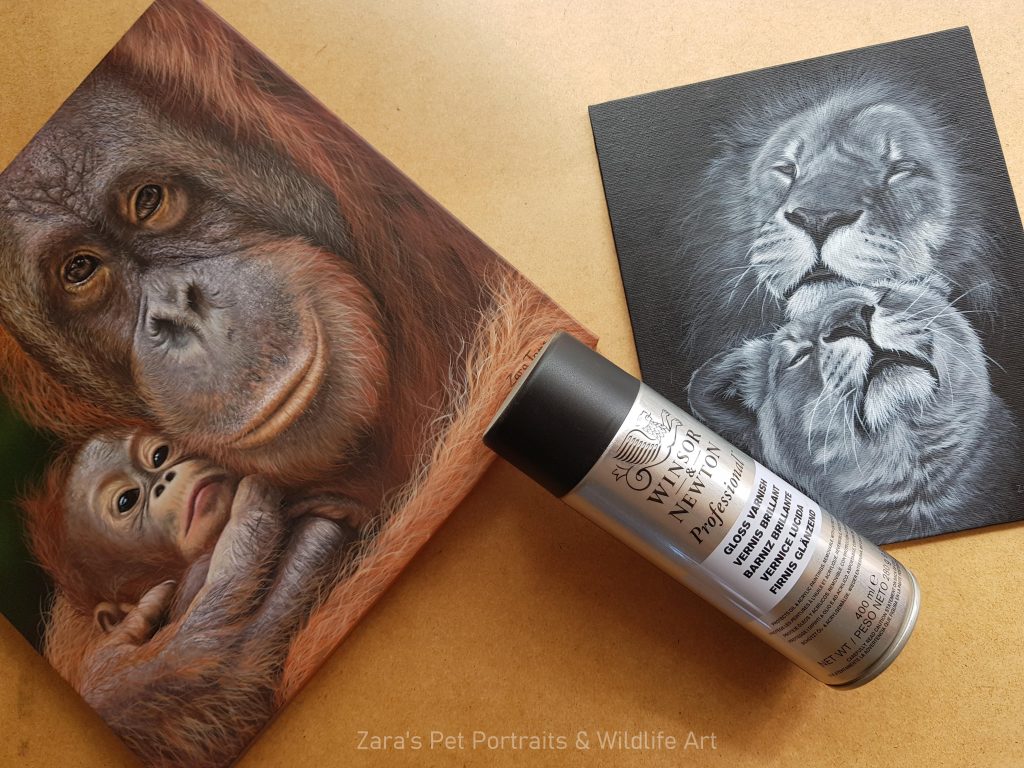 The finish that you go for is entirely your choice. It’s all down to personal preference. I have always used a gloss varnish. For one reason.. It makes the colour and values of your piece return to how it looked when the paint was wet. It’s exactly the same concept if you have ever printed off an image on normal printer paper and then printed the same image on photo paper. Everything is that much more punchier.