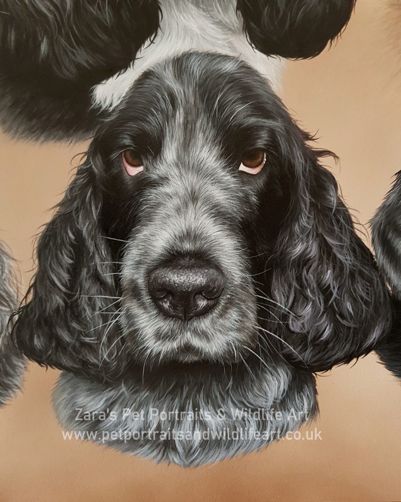 Sadly, Charlie is no longer with us. After I had drawn all six of these gorgeous dogs in colour pencils their owner wanted a large canvas painting of them all together. She had one place she wanted the piece to go and wanted a very specific size. This is where I feel very lucky to have a framer who makes my canvases for me which enables me to take very specific requests.