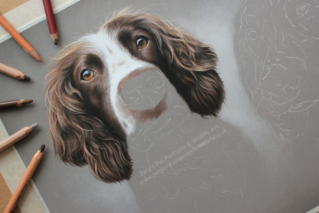 Chloe is the first of two Spaniels on this A3 (11.7″ x 16.5″) pastel drawing. I have kindly been given permission to share these work in progress updates with you.
