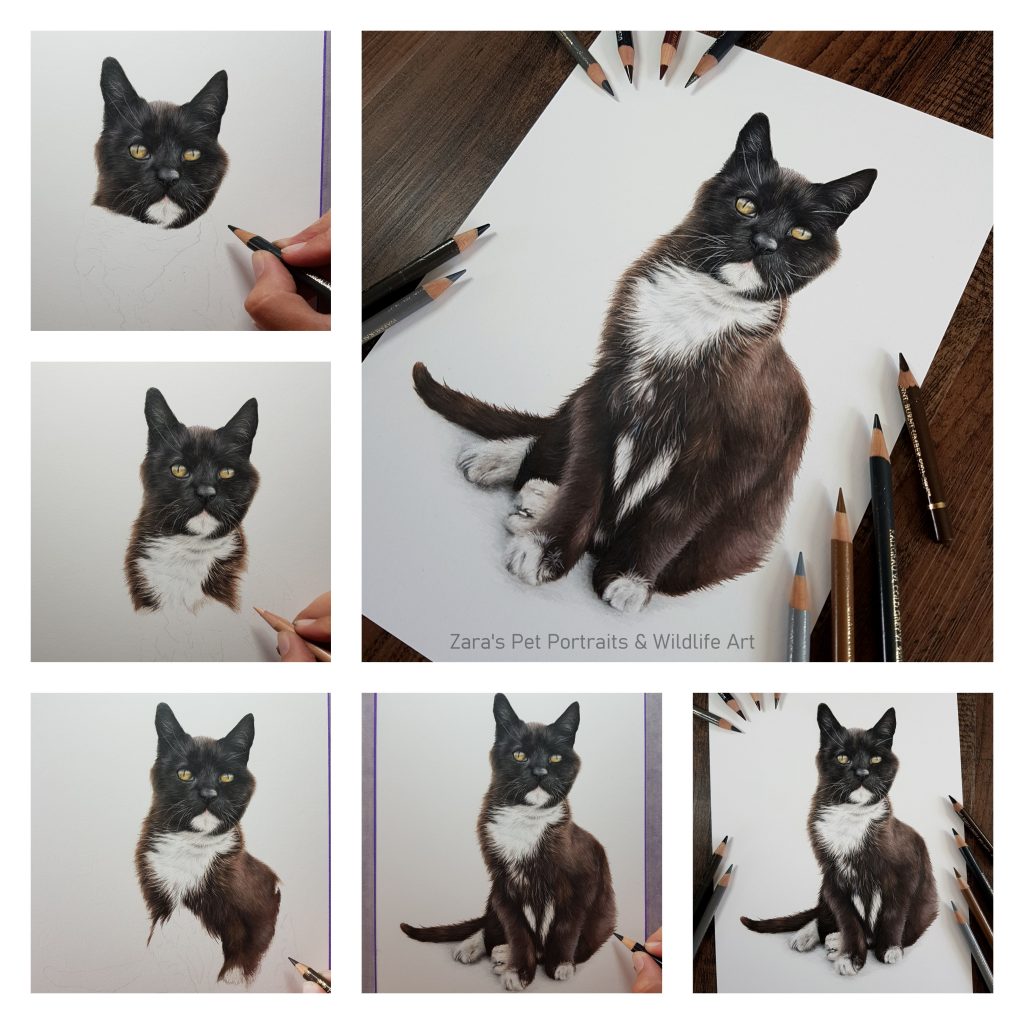 These are the exact photographs I send my clients so they can see their portraits develop. I always thought that if I was commissioning an artist to paint or draw my pets I’d want to see the progression. Watching the portrait come to life.