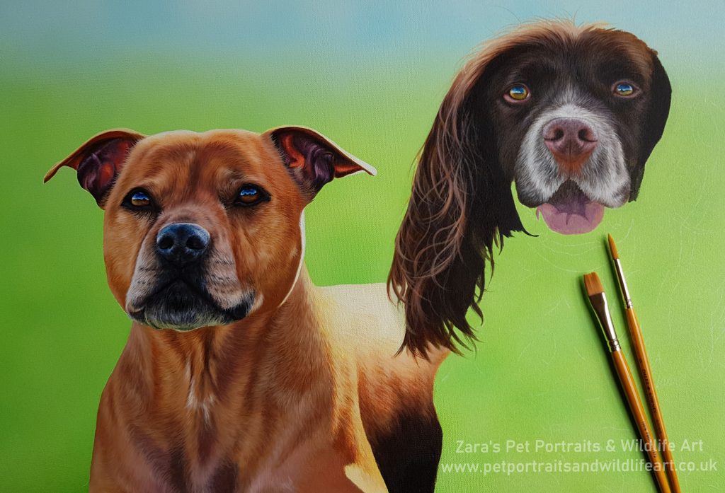 First off… Ignore the background… If I got the colour of Maisey right the background went a bit erm.. vibrant! Not that it matters because I have the background left to do once both of them are finished. I don’t actually do the backgrounds after but I was to impatient with this and wanted to get my dogs started! I have made it far harder for myself.