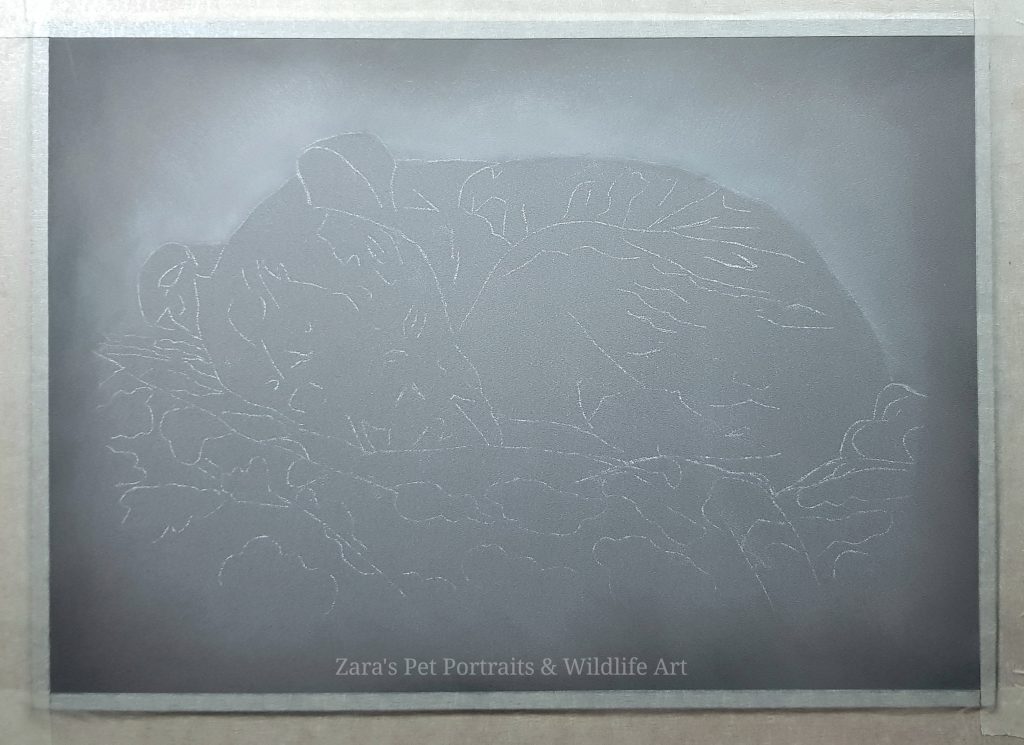 His family wanted the portrait to capture him at his most content. For Oliver that is curled up on his blanket on his super comfy bed. Very cute and I cannot wait to start :).