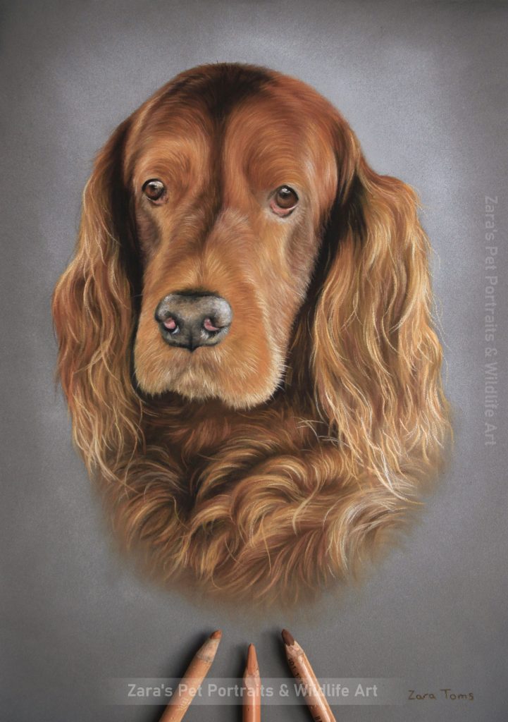 Capturing the colouring of this handsome Red Setter was a real pleasure. So many lovely rich tones and all those waves and curls in the fur. The ruffled chest fur was especially nice to work on. I have been super busy working on so many beautiful breeds which I cannot wait to share with you.