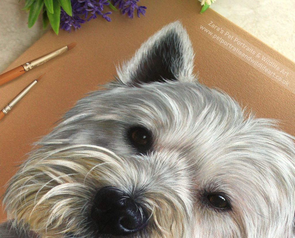 Look at Alfie here, the West Highland Terrier. There are so many different tones. Capturing these differences ensures that your portrait will not be flat. You need to ensure your contrast is correct. Your lights light enough and your darks dark enough.