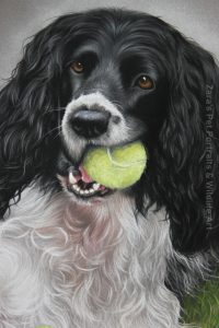 Dod never gave up a tennis ball unless you gave her another to swap it :). She also liked holding sticks so under her left paw her owners wants a small twig. This twig was in the original reference photo but it was not near her so her owners asked me if I could put it under her paw.