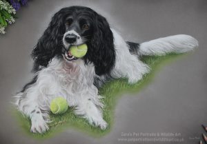 This 14″ x 20″ portrait was a nice size for a full body portrait. Her owners wanted a little amount of grass around her and they wanted a couple of additional elements added to personalise the portrait even more.