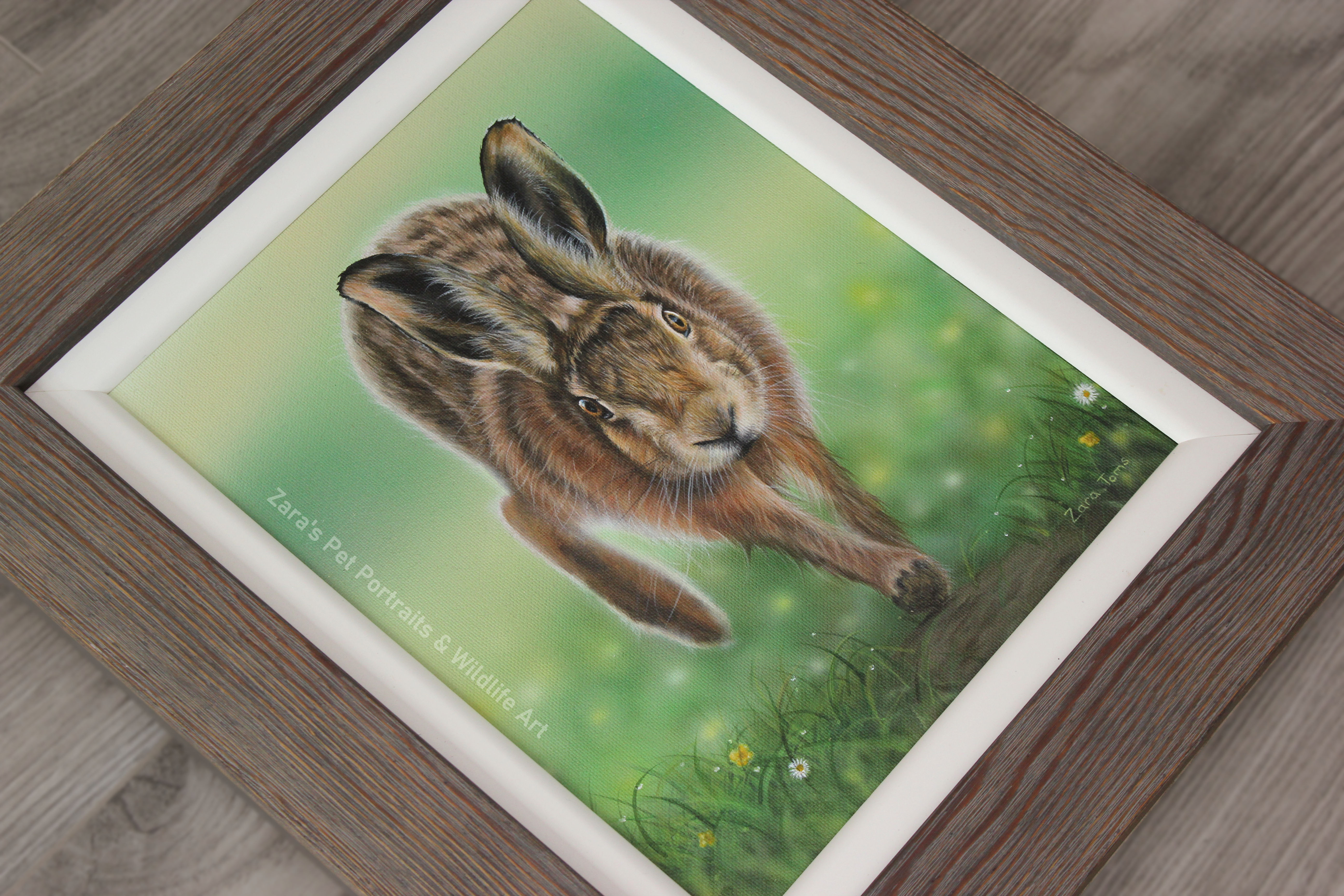 This always reminds me of the things in Spring that make me happy. Seeing the Hares and Rabbits dash across the fields, the daisies starting to emerge as the season gets in full swing. I love capturing movement and this is something I am keen to pursue in future projects I have planned. This Hare that was perfectly captured by Warren Etherington jumped out at me as soon as I saw it and I was so grateful to have been given permission to do my version in acrylics.