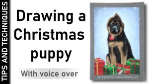I’m always busy working with pet portrait commissions and Patreon tutorials. Last weekend I uploaded the Christmas themed tutorials to Patreon – a ‘Drawing a Christmas puppy’ and ‘how to paint a Robin’.